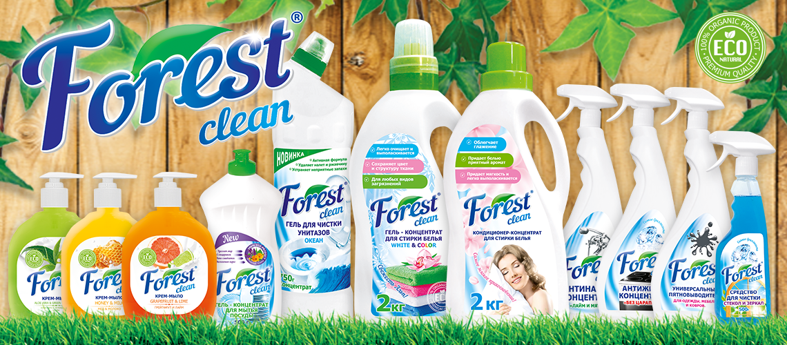 Компания "КЛИНТАЙМ" рада представить вашему вниманию новую линейку высокоэффективных средств для профессионального и бытового использования под маркой «FOREST CLEAN» ECO